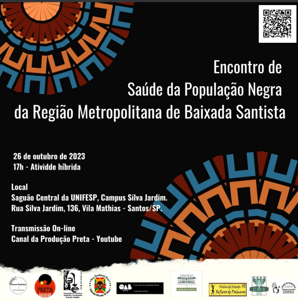 No dia 26 de outubro acontecerá o Encontro de Saúde da População Negra da Região Metropolitana da Baixada Santista. O evento acontecerá de forma híbrida, a partir da parceria entre o Fórum Paulista de Saúde da População Negra, OAB Santos – Comissão da Igualdade Racial, UNIFESP, Núcleo de Estudos Reflexo de Palmares, Conselho Municipal de Saúde de Santos, Conselho Municipal de Participação e Desenvolvimento da Comunidade Negra e Promoção da Igualdade Racial de Santos, Produção Preta, Associação de Povos de Terreiro Rainha do Mar de Guarujá e Região, Nzo Tumbansi Kwa Ndanda-Nlunda Ye Nkosi.
