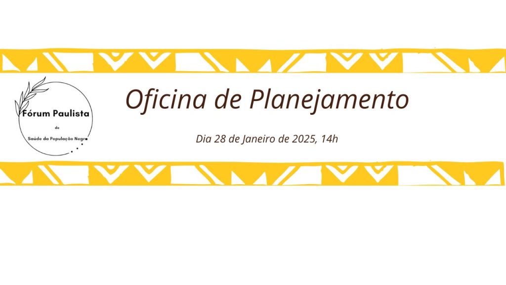 A Oficina de Planejamento do Fórum Paulista de Saúde da População Negra para 2025 acontecerá de forma remota, no dia 28 de janeiro de 2025, às 14h. Solicitamos que confirmem presença aqui, neste link até o dia 27/janeiro, às 00h (véspera do evento), para que todos possam receber o link de acesso à Oficina.
